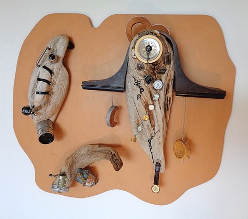After completing Ancestral Drift, I gathered another group of drift wood and implemented hierarchy objects and repurposed components from all sorts of tools and items within my studio past and present objects. The components encase in driftwood and mix with other unrelated components to evoke some inquisitiveness about users and usage.