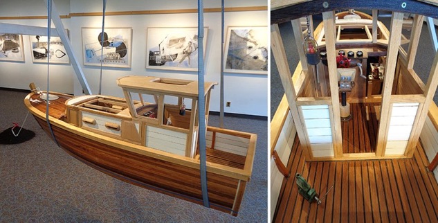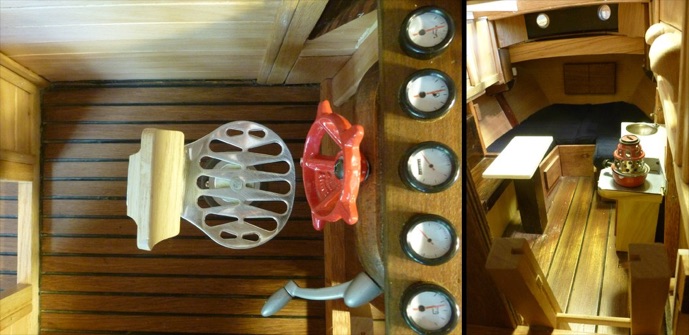 Tiki Mulvihill, Landlocked? Vessel interior (1/4 scale), fabricated from found objects, hardware and repurposed materials.