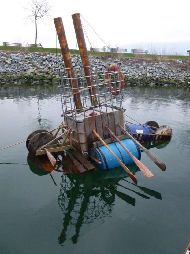 SS Aimless is anchored in contemporary times, yet moored to the traditional transport systems of our past. Caught in the ebb and flow of the tide, it serves as a metaphor for the conflicting notions of our time. The intention of SS Aimless, purposefully impractical, with no bow or stern, is powered to go nowhere in an era that consumes copious amounts of resources but fails to get us further ahead.
